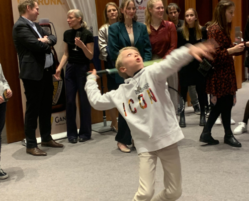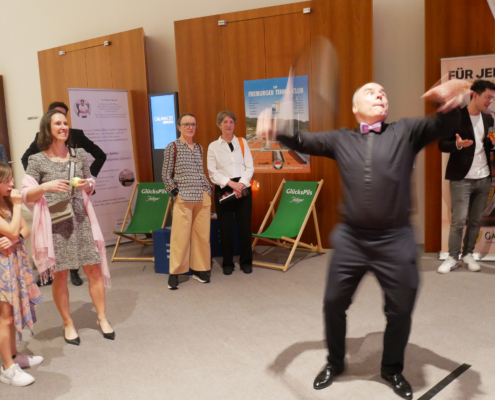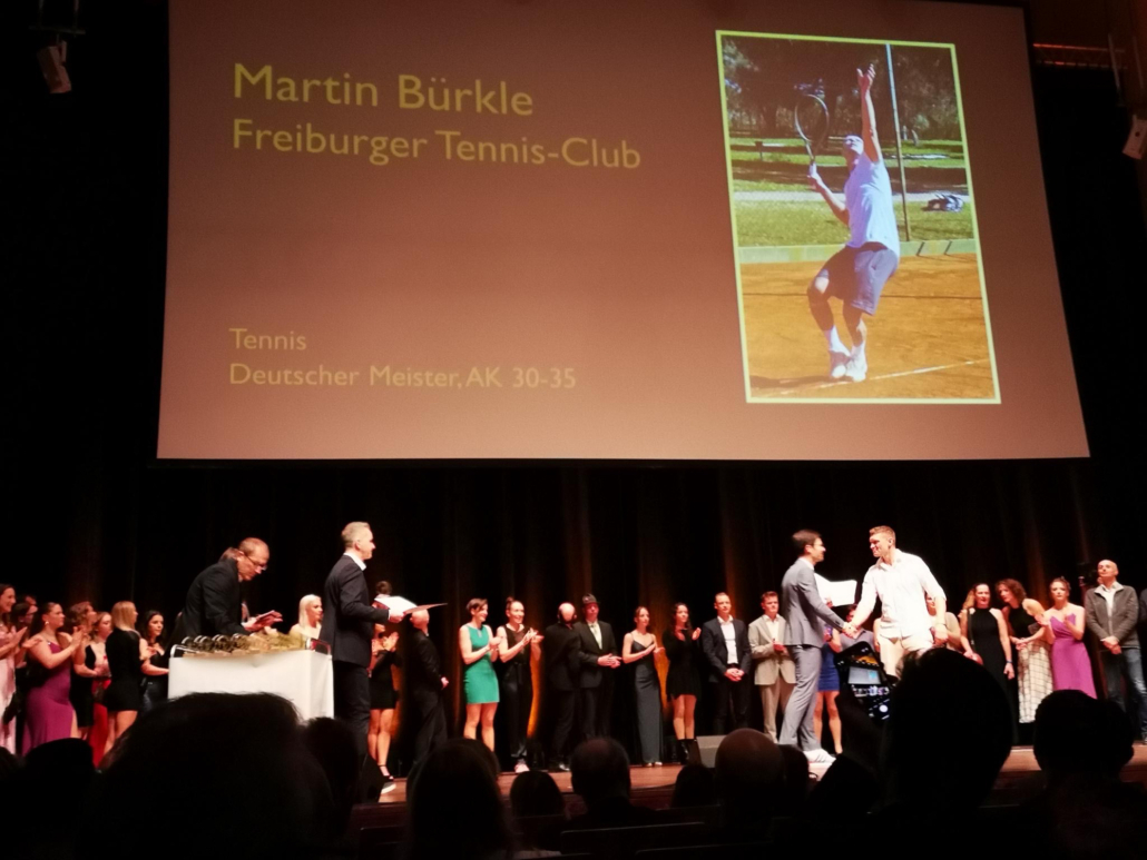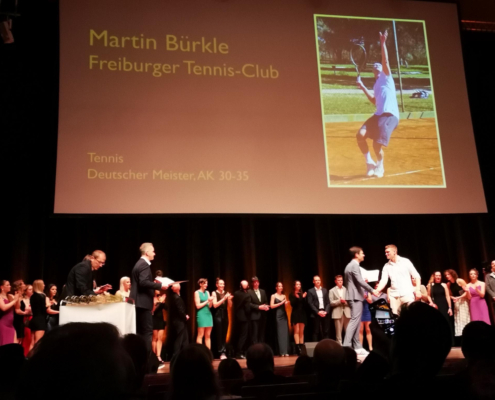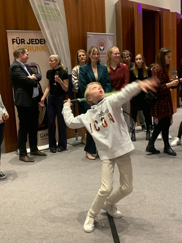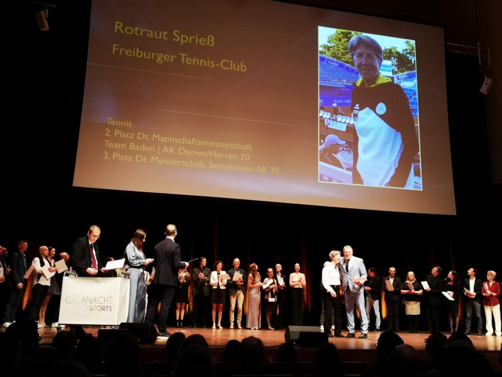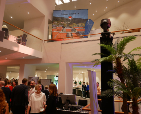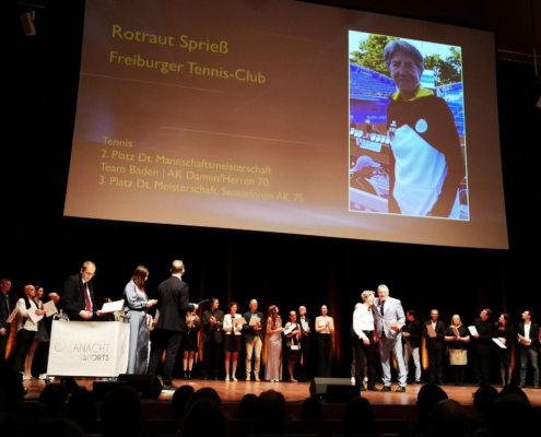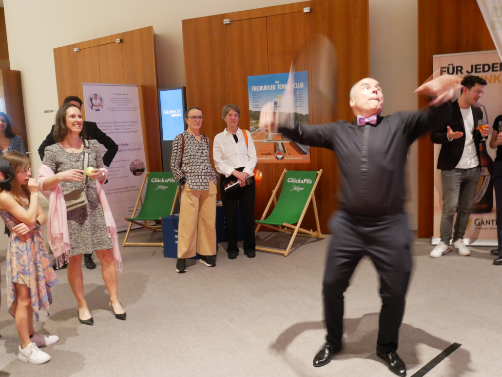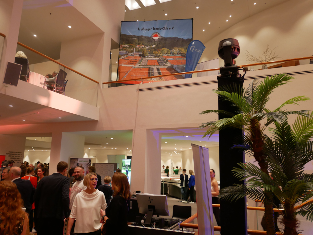 Der FTC präsentierte sich auf der diesjährigen Galanacht des Sports der Stadt Freiburg von seiner besten Seite. 80 Clubmitglieder machten sich innerhalb der mehr als 1100 Gäste lautstark bemerkbar, als Rotraut Sprieß mit einer Silbermedaille und Martin Bürkle mit einer Goldmedaille für ihre herausragenden Erfolge im Jahr 2023 geehrt wurden. Der Stand unseres Clubs war nicht nur sehr einladend und schön dekoriert, sondern wurde insbesondere dank des Aufschlagkäfigs zu einem magnetischen Anziehungspunkt für viele Besucher. Dort konnte man mit Können und etwas Glück in vier verschiedenen Teilnehmerklassen durch eine möglichst hohe Aufschlagsgeschwindigkeit schöne Preise gewinnen. Daneben wurden gut gelaunt zahlreiche anregende Gespräche geführt oder neue Kontakte geknüpft – es war ein sehr gelungener Abend.
