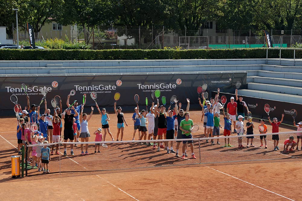 Tenniswoche für die FTC Jugend 50–60 TeilnehmerInnen spielen intensiv Tennis und trainieren mit viel Spaß Montag – Freitag ‑Freitag Camp-Olympiade als Abschluss