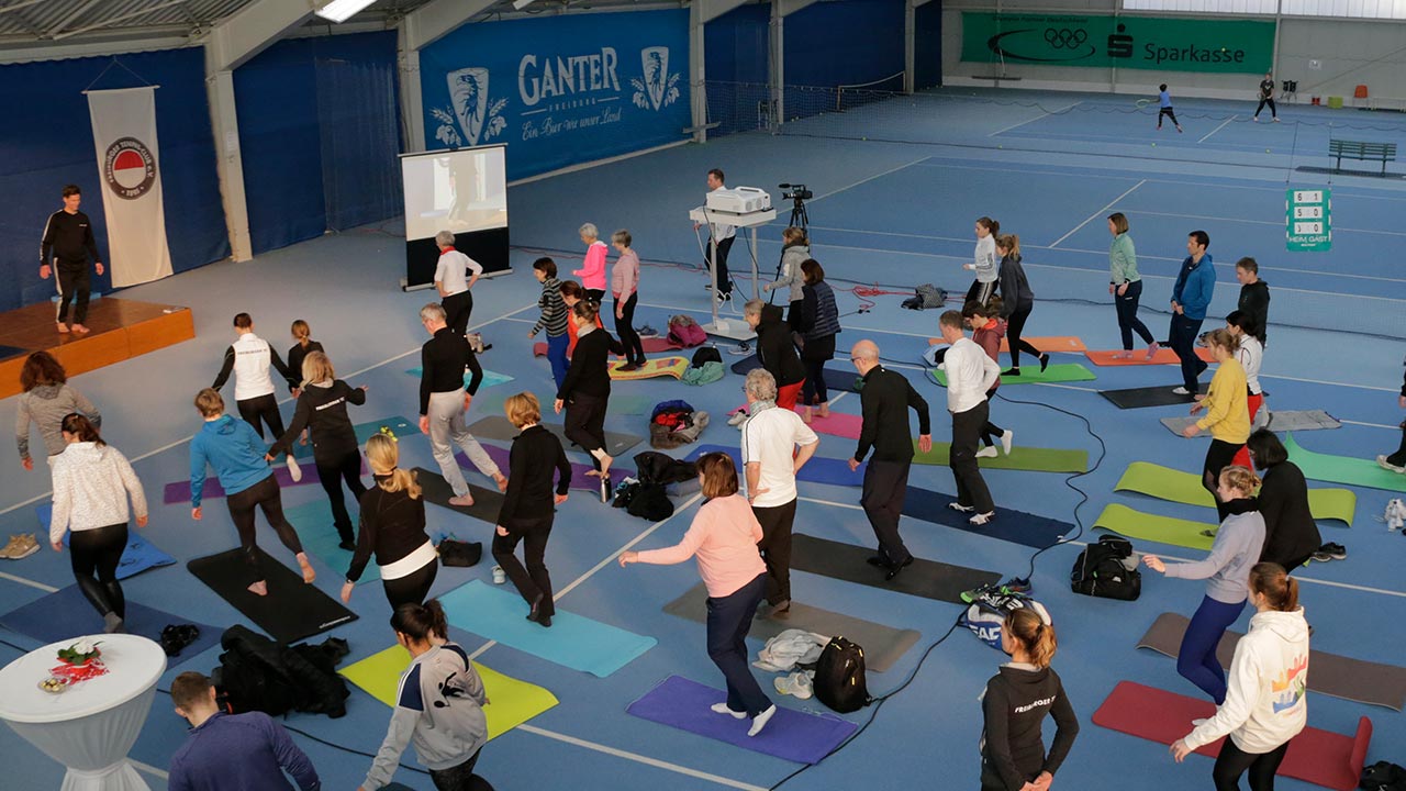 Der FTC ist mittlerweile der größte Club in Baden. Vorstand Burkard Poschadal betonte bei seiner Vorstellung von Silvester Neidhardt, dass es dem Club nicht um Quantität, sondern vor allem auch um Qualität geht. Aus diesem Grund engagierte der FTC für seine Mitglieder den bekannten „Re-Function“-Spezialisten und „Entrostungstrainer“ Silvester Neidhardt mit seinem Vortrag „Steh jetzt auf“. Über 60 Mitglieder nahmen dieses Angebot dankend an und bekamen nicht nur Impulse für ihr Tennis-Warm Up, sondern vor allem auch für die Alltags-Routinen.