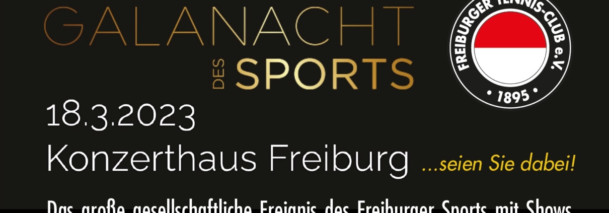 Seien Sie dabei. Am 18.3. findet im Konzerthaus das große gesellschaftliche Ereignis des Freiburger Sports statt, mit Shows, Ehrungen, Party und Zusammentreffen mit den besten Sportler*innen der Stadt Freiburg.